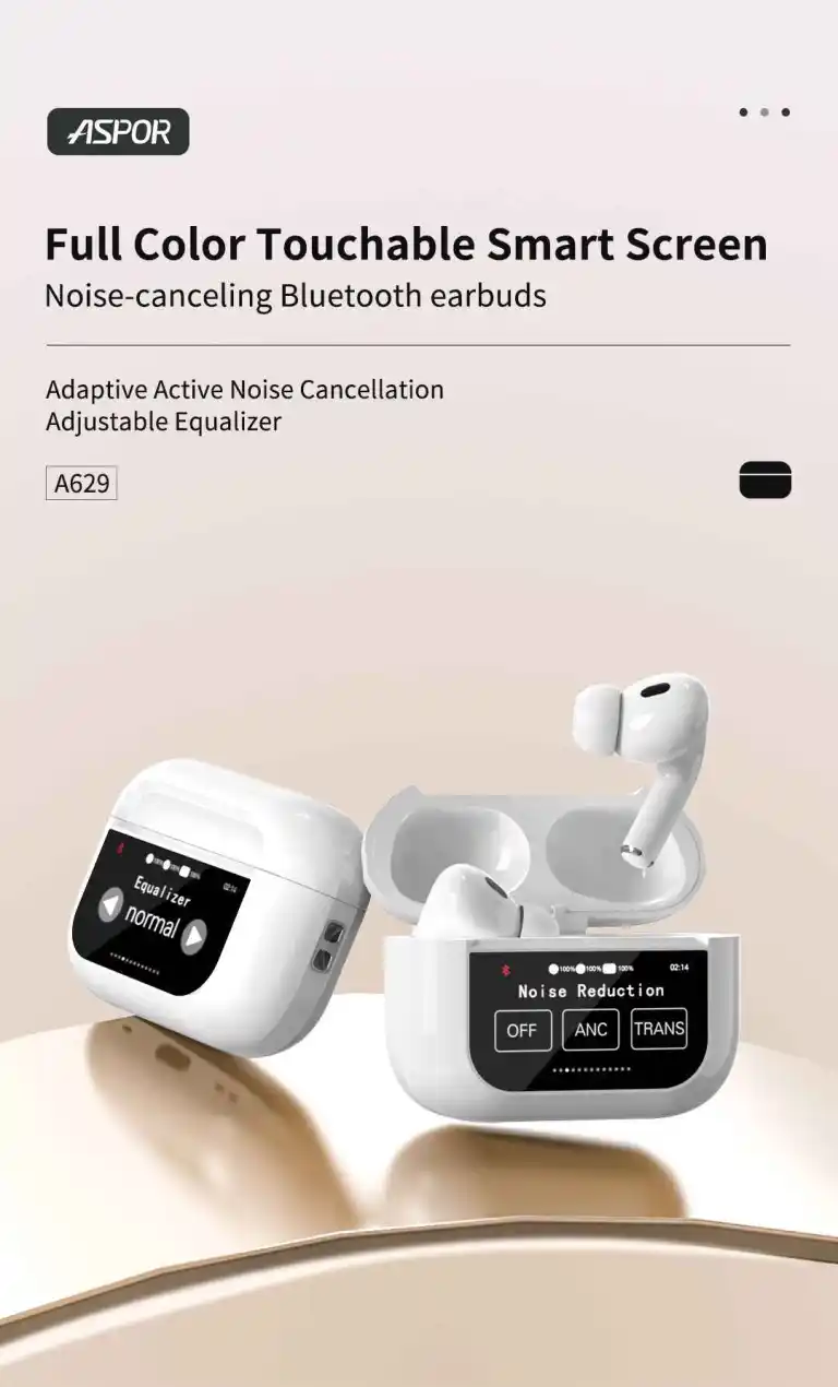 ASPOR A629 V5.3 ANC Touch Screen AirBuds Pro Version