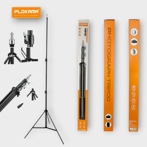 Constructed from high-strength aluminum alloy, the PLOKAMA light stand offers a maximum height of 2.8 meters (9.2 ft) with adjustable sections and a universal 1/4″ screw mount, ensuring compatibility with most photography and video gear.
